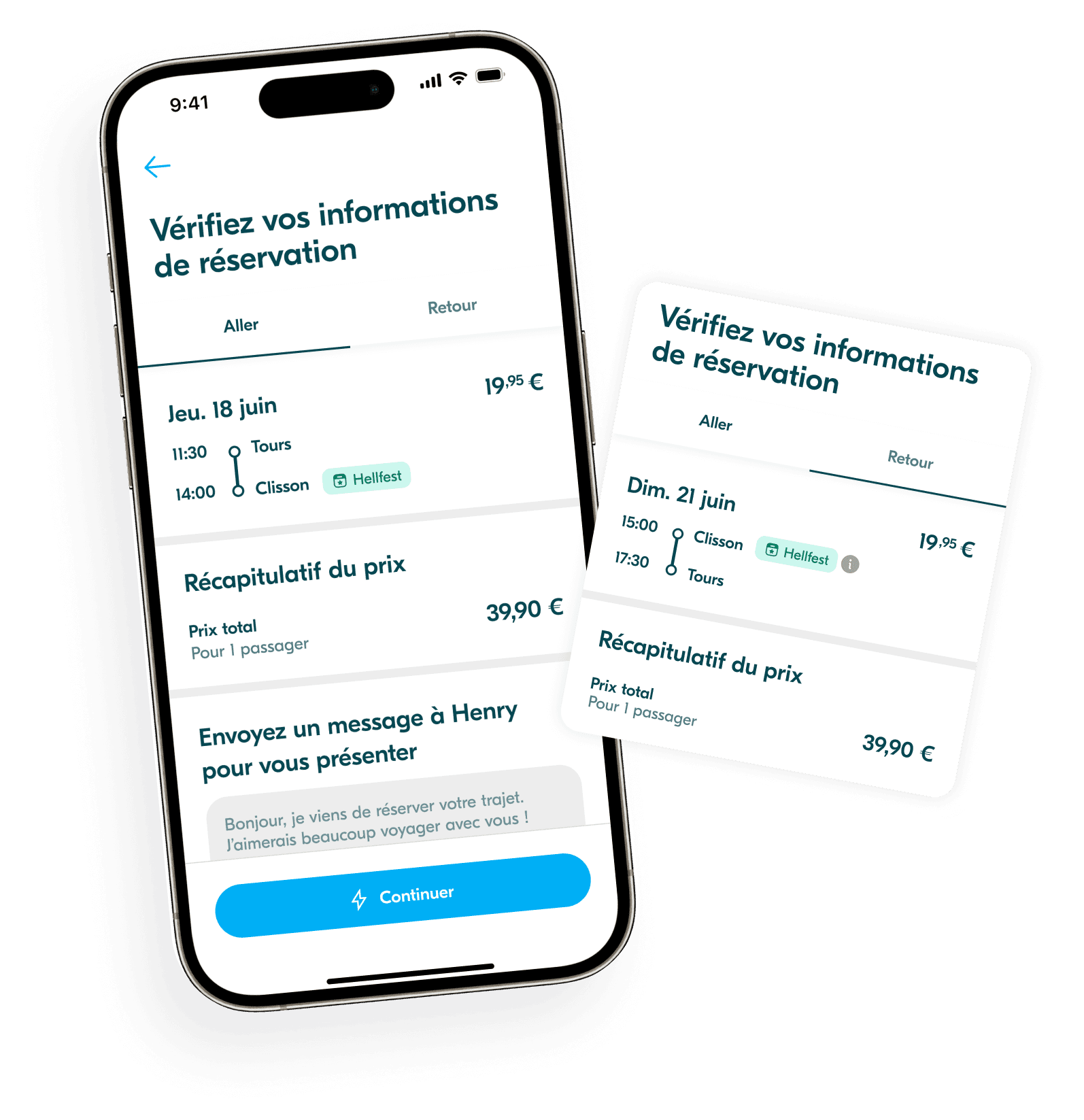 Possibilité de réserver directement le trajet retour avec le même conducteur qu’à l’aller