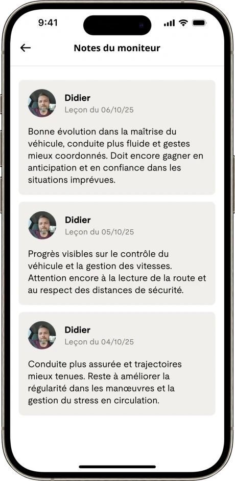« Je vois les notes du moniteur, le bouton tout voir et je pense que je me référerais à cette personne. Tout est assez positif. Je vois bien l’évolution dans le temps. »