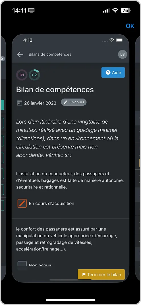Bilan de compétences d’une conduite, dédiée au moniteur d'auto-école